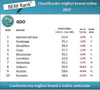 Ad incidere su queste dinamiche è l’aumentata concorrenza da parte di altri brand del settore della GDO che sono entrati nella classifica generale del BEM Rank durante il 2017. Tra questi si possono citare Supermercati Dem, Tigre Supermercati, CTS Supermercati, Doro Supermercati ed Emi Supermercati.
