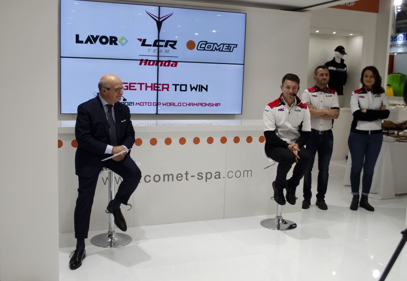 La partnership con LCR Honda è stata ufficialmente presentata l’8 Novembre a Bologna nel corso della 43° edizione di EIMA (Esposizione Internazionale di Macchine per l’Agricoltura e il Giardinaggio). Sul palco, allestito per l’occasione all’interno dello stand Comet (Padiglione 30 Stand C3), sono intervenuti Paolo Bucchi e Lucio Cecchinello.