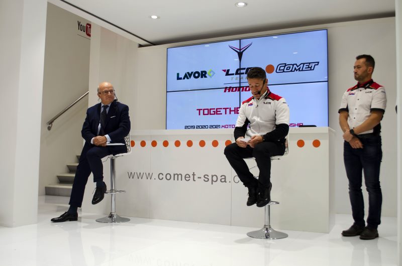 Lucio Cecchinello (LCR Honda Team Principal): “Siamo veramente felici per questo nuovo progetto e siamo onorati per la fiducia che il Gruppo Comet ha riposto nel nostro Team, in quanto ambasciatori dei loro colori e valori nel mondo: attenzione ai dettagli, competenza tecnica e passione per il nostro lavoro sono solo alcuni degli aspetti che ci accomunano. Nei prossimi tre anni faremo come sempre del nostro meglio per supportare tutte le loro attività promozionali e saremo dei fieri utilizzatori dei loro prodotti sui campi gara, cercando inoltre di dare consigli utili per lo sviluppo di una gamma di idropulitrici pensate appositamente per la pulizia delle moto, andando incontro alle esigenze di migliaia di motociclisti nel mondo”.