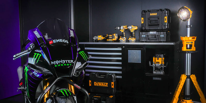 In veste di Official Supplier della squadra Monster Energy Yamaha MotoGP, DEWALT si occupa di nuovo di fornire al team di meccanici gli elettroutensili necessari per la preparazione delle moto impegnate nel circuito del motomondiale.