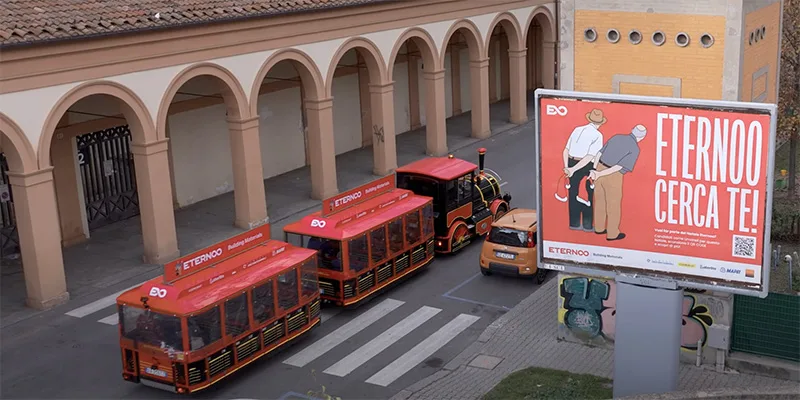 La campagna prende vita attraverso un video coinvolgente dove un gruppo di simpatici Umarell parte a bordo del trenino turistico di Bologna per visitare i cantieri della città, passando per la Madonna di San Luca, come se fossero attrazioni culturali da ammirare.