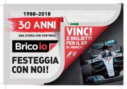 Una seconda iniziativa, dal 19 Aprile al 2 Maggio, è il concorso “Brico io 30 anni”. Tutti i clienti che utilizzeranno il coupon da 10 euro, ricevuto nel periodo precedente, potranno ritirare una cartolina che, compilata e imbucata nell’apposita urna, darà la possibilità di partecipare all’estrazione di 2 biglietti per assistere al GP di Formula 1 che si svolgerà il prossimo 2 Settembre all’Autodromo di Monza.