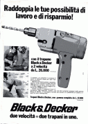 Nel frattempo l’utensile che si andava sempre di più affermando come il “Re del bricolage” era il trapano e in particolare il Black & Decker. Dopo le campagne in cui si annunciava perentoriamente “se hai una casa devi avere un Black & Decker” l’azienda cominciava a spostare l’attenzione sulle potenzialità del trapano, non solo in quanto “foratore di muri” ma, grazie a debiti accessori, per espletare lavorazioni diverse e molto utili. A seguito di questa tendenza ecco emergere le prime campagne pubblicitarie tutte dedicate agli accessori per trapano come quella della Wolfcraft che troviamo nella Photo Gallery.