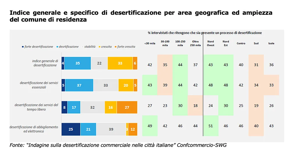La chiusura dei negozi preoccupa e intristisce i cittadini, soprattutto al Nord e nelle città di medie dimensioni, che percepiscono chiaramente quali tipologie merceologiche sono a maggiore rischio: questo, in sintesi, quanto emerge da un’indagine realizzata da Confcommercio in collaborazione con SWG nell’ambito del progetto Cities che si occupa di contrasto alla desertificazione commerciale nelle città italiane e sviluppo del valore sociale delle economie di prossimità.