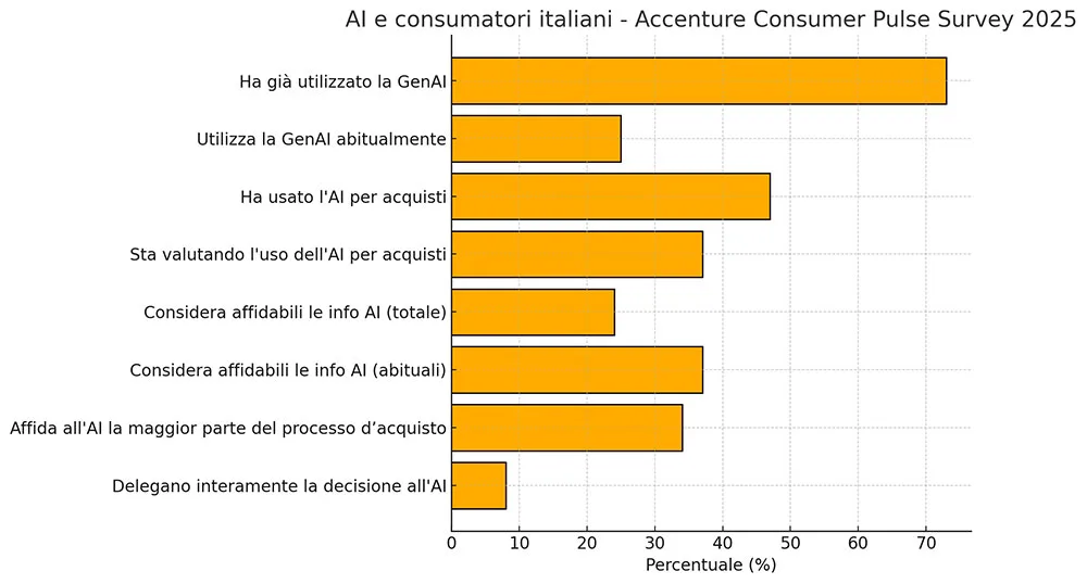 Secondo l’Accenture Consumer Pulse Survey 2025, l’AI è sempre più protagonista nell’esperienza d’acquisto: guida fidata, compagno affidabile e “secondo Io” per il consumatore italiano.