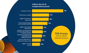 La principale motivazione per l’acquisto online è legata alla possibilità di trovare prezzi più vantaggiosi grazie al web. Questa spinta per tutti gli abitanti dei altri Paesi presi in esame, Italia compresa. La ricerca di prezzi più convenienti è il motivo principale per il 75% degli intervistati (+63% rispetto al 2016). Tra le altre motivazioni, la possibilità di confrontare facilmente i prodotti tra loro (41%) e di leggere il parere di altri grazie a commenti e recensioni (40%). Tra i mezzi preferiti per confrontare i prezzi resta forte la presenza dei marketplace, ma cresce l’utilizzo delle piattaforme di comparazione prezzi. Il 50% degli intervistati dichiara di utilizzare un comparatore online (+6%), a dimostrazione di un’evoluzione comportamentale e di una preferenza orientata verso canali che sono considerati più neutrali e trasparenti.