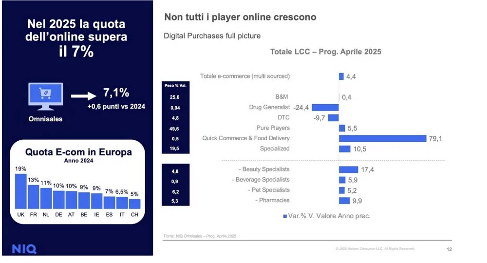 Emerge l’e-commerce che, con una quota pari al 7,1% nel 2025, assume una dimensione sempre più significativa, registrando nel LCC in totale un +4,4% a valore. Modalità scelta soprattutto per comodità e convenienza.