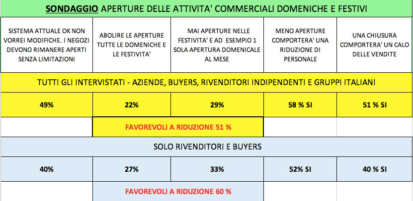 Abbiamo condotto un sondaggio, anonimo, con un campione di oltre 80 partecipanti, tra aziende, titolari di negozi e buyers di insegne della distribuzione. Dalle risposte emerge, forse a sorpresa, una maggioranza favorevole alle chiusure, anche se in modo parziale, più che totale.