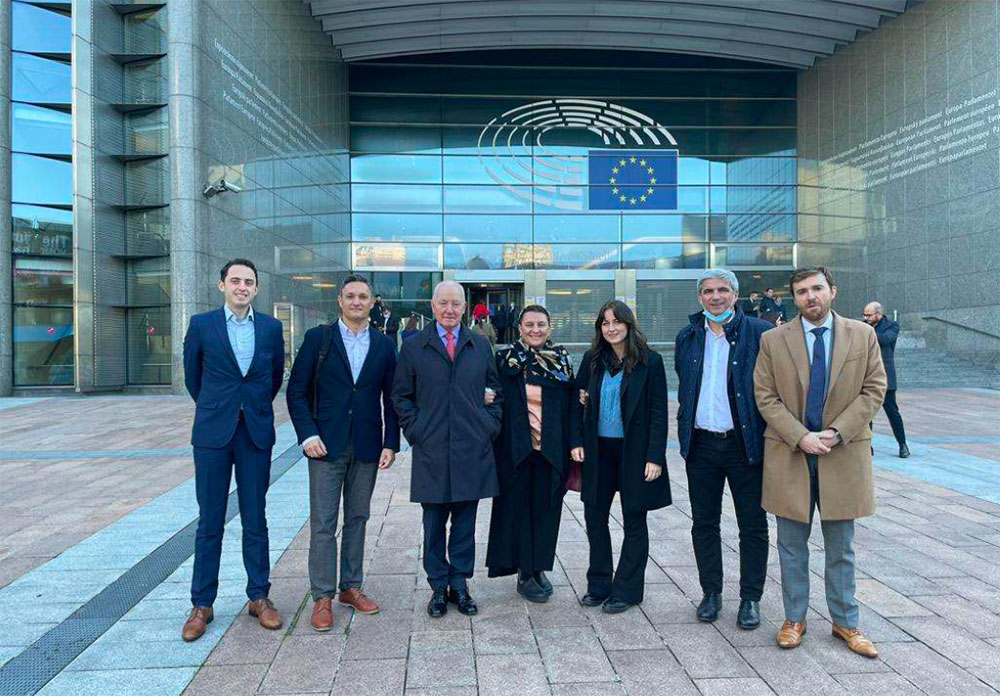Nella foto: Sabrina Canese e Francesca Ferrari di Assofermet Ferramenta al centro della foto con(da sx a dx): Oliver Ginestier – Assistente Esecutivo EDRA/GHIN, Alejandro Roda – Amministratore delegato ADFB (Spagna), John W. Herbert – Segretario Generale EDRA/GHIN, Guy Colleau – CEO Maxeda DIY Group (Benelux), Julien Bouyeron – Direttore degli affari europei EDRA, all’Europarlamento.