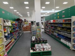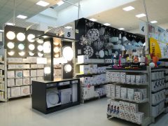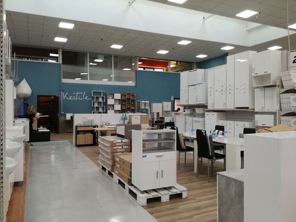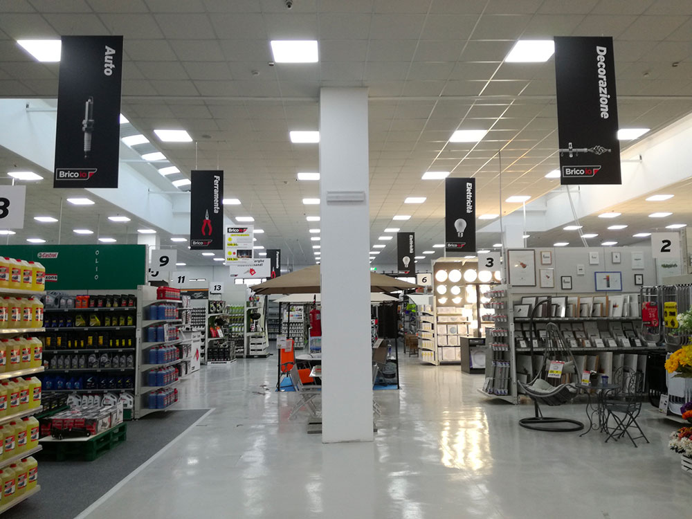 Come di consueto, all’entrata, sulla destra, è collocato il reparto casalinghi seguito da quelli dedicati a decorazione, elettricità e giardinaggio, nella parte centrale si trova il reparto auto, ferramenta e vernici, a sinistra scaffali, bagno, idraulica e legno.