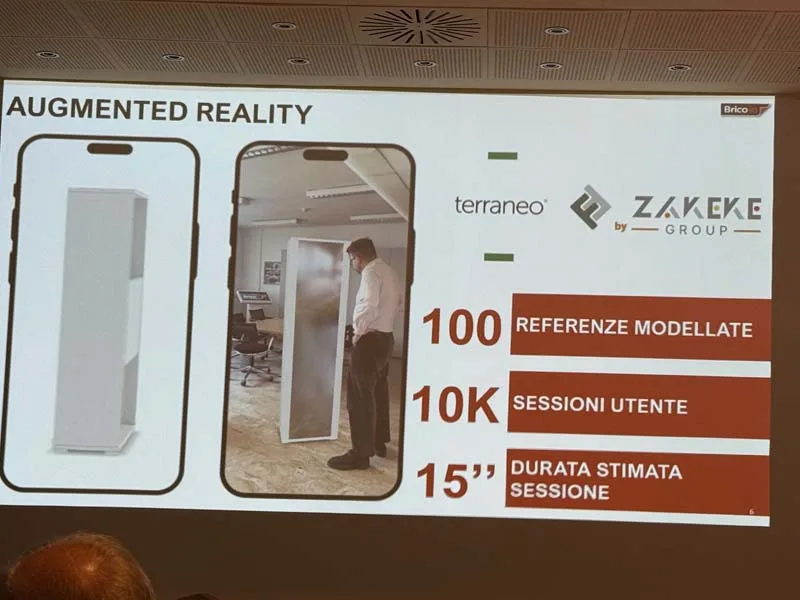 La prima riguarda la realtà aumentata, con il complemento d’arredo e la possibilità di vederlo in 3D mediante un QR code (presentato in anteprima alla Fiera Sistema del 2024). Il progetto è stato realizzato con Terraneo e Zakè, una start up italiana. Insieme sono state sviluppate 100 referenze, con costi di digitalizzazione compresi tra i 100 e i 500 euro a referenza.