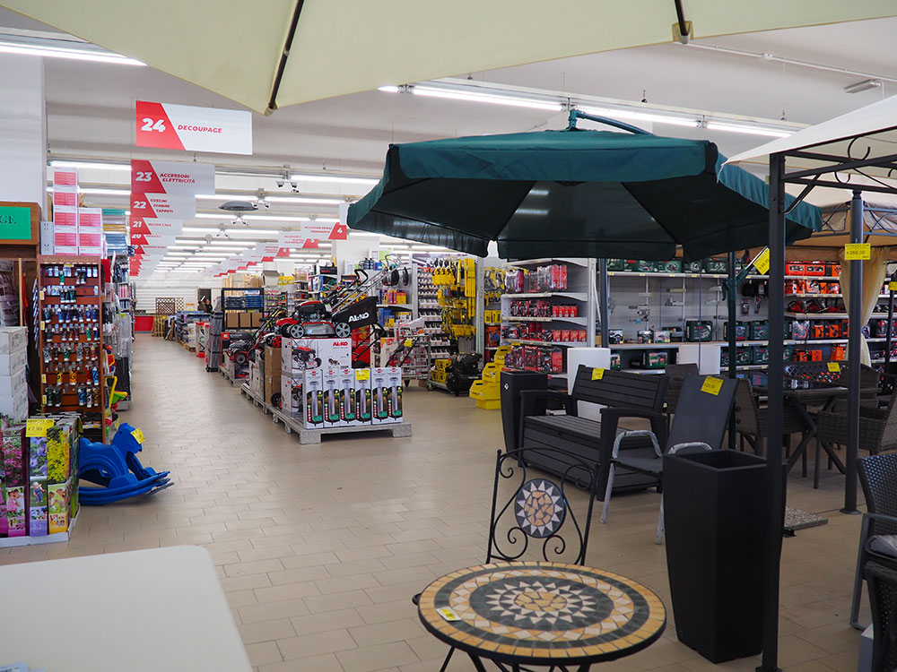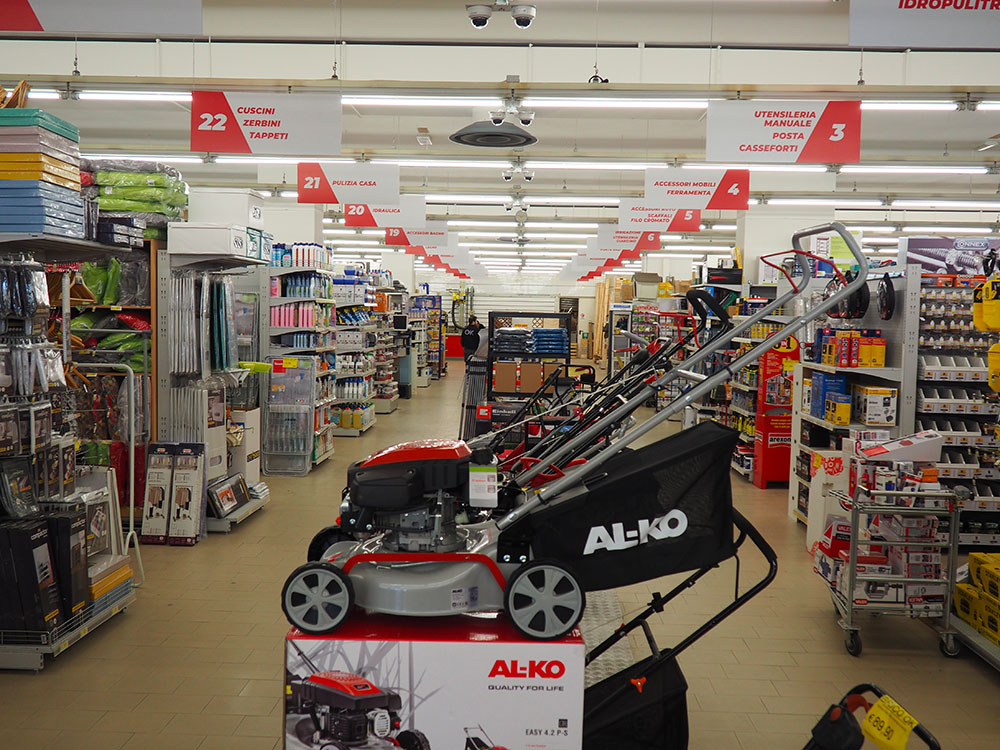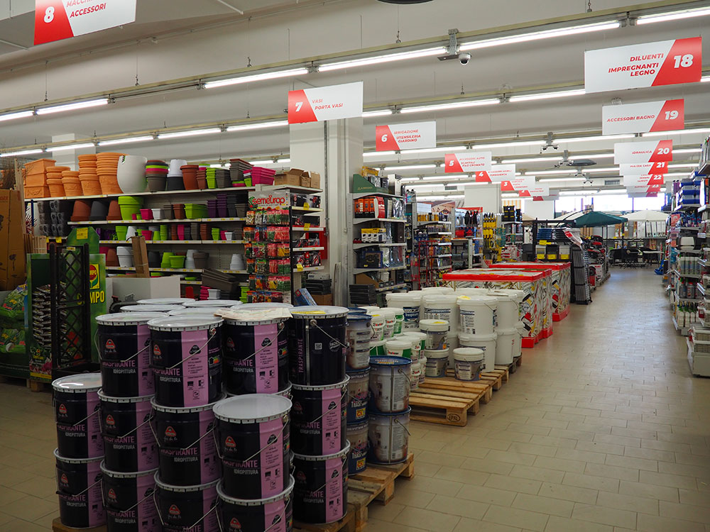 Dall’ingresso, ampio e ben illuminato, si accede all’area promozionale stagionale, con il corridoio centrale che facilita l’accesso ai vari settori merceologici. Lo spazio più ampio ha permesso l’ampliamento dei settori utensileria elettrica, con particolare attenzione al mondo della batteria, l’utensileria manuale, la ferramenta e il reparto giardino.