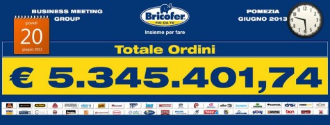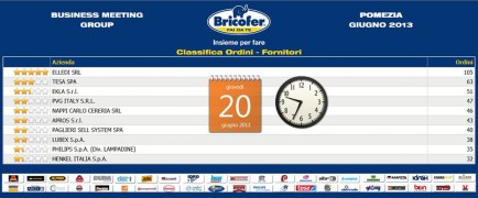 Il dato è indiscutibile perché, per la prima volta in questa edizione, Bricofer ha messo a disposizione una piattaforma web, dobbiamo dire estremamente moderna, funzionale e semplice da utilizzare, che ha consentito oltre alla gestione di un’agenda digitale per razionalizzare gli appuntamenti anche la visione in tempo reale degli andamenti degli ordini sia in termini numerici che di valore. Un grande schermo posto all’ingresso della sala del Business Meeting metteva in evidenza, minuto per minuto, il numero di appuntamenti, gli ordini e l’ammontare in valore per ciascun fornitore. Erano infatti i fornitori stessi che caricando gli ordini sul sistema attivavano il conteggio automatico. Merito a Bricofer che ha deciso, in una logica di trasparenza, di rendere noti tutti i numeri che hanno caratterizzato la due giorni di lavoro. L’effetto creato è stato quello di una simpatica competizione tra i fornitori che ad ogni ordine inserito vedevano mutare la propria posizione nella classifica.