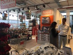 Il punto vendita, pur contando su poco meno di 1.000 mq di esposizione è molto gradevole e luminoso – complice un total look totale a vetrina, per l’esterno, e il posizionamento al 1° piano. Anche l’ingresso gioca la sua parte, con una sistemazione molto spaziosa dell’area casse, che mostra, immediatamente, il corner dedicato all’Outlet del Kasalingo e, in successione, la vera novità di questo punto vendita.