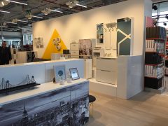 Un ambiente molto light, privo di massificazioni, dove il punto di forza è l’ambiente accogliente. Ma non solo. Oltre alla novità, in sé, dello spazio, va segnalata la modalità di vendita assistita mediante un personal shopper può essere d’aiuto in tutte le fasi di scelta del prodotto, nonché nella guida all’acquisto anche mediante i due E-wall installati.