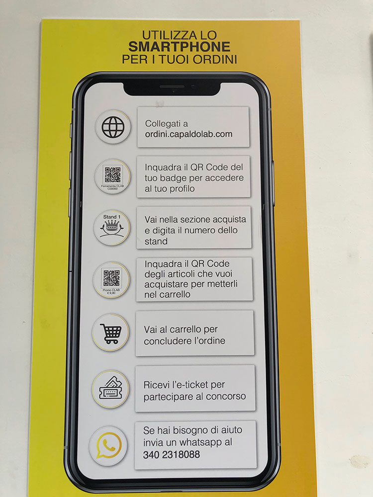 Il punto di partenza è l’esposizione, stand più o meno preallestiti, prenotabili su diversi moduli, a discrezione dell’espositore, unita ad una macchina tecnologica messa a punto per offrire al visitatore la possibilità di accedere alle offerte concordate tra grossista e produttore ed effettuabili in modalità telematica, ovvero da computer e da smartphone.