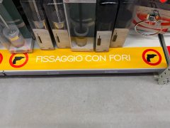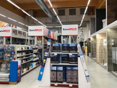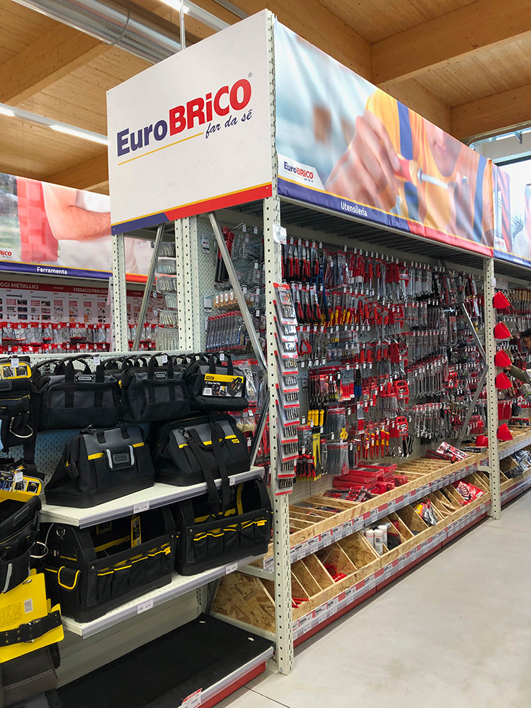 “ Nel pensare e progettare questo negozio, così come negli ultimi, ad esempio Brescia o Ronchi, siamo partiti col mettere al centro il cliente e le sue necessità – spiega Alain Panato, responsabile acquisti Eurobrico -. Da un lato l’aspetto promozionale che accompagna il visitatore per tutta la lunghezza del punto vendita e si pone come una proposta iniziale rispetto al reparto corrispondente, dall’altro la ricerca di una maggiore teatralizzazione dei corner che abbiamo valorizzato con scaffalature alte in modo da distinguerli rispetto al resto del negozio”.