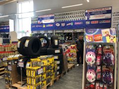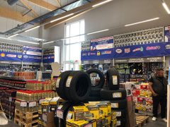 Il successivo, posto alla fine del percorso circolare e a fianco alla barriera casse è l’ampio reparto dedicato alla cura dell’auto e bici. Circa 110 mq di esposizione con un’area promo, al centro, dove i consumabili (ad esempio batterie e olio) si presentano massificati, e che comprende un desk per la vendita di pneumatici e la successiva prenotazione del servizio montaggio, con una società convenzionata. “Questo del Car Care è un percorso che abbiamo intrapreso da qualche tempo, precisamente da quando la distribuzione alimentare ha un po’ dismesso la categoria, aprendo, in modo fisiologico, un’opportunità. E’ un mercato che attira una clientela giovane e che, per questo, ha risvolti positivi sulle vendite di tutto il negozio” precisa Sergio Paterno.