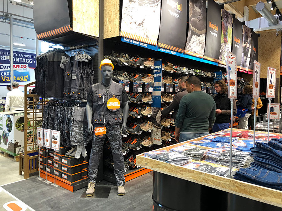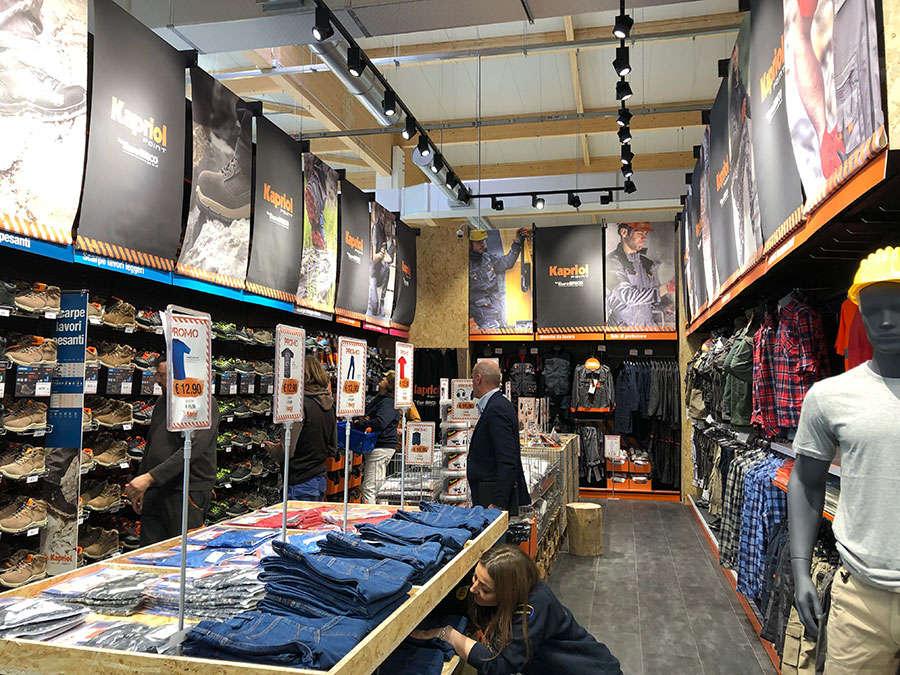 Tra i reparti più distintivi del punto vendita, che possiamo definire veri e propri shop in shop, segnaliamo quello dedicato all’antifortunistica (abbigliamento, scarpe e dispositivi) realizzato in esclusiva con Kapriol: “Qui a Villanuova siamo ormai al sesto impianto. Sono spazi cha vanno dai 60 ai 100 mq e che ci stanno dando molte soddisfazioni perché rappresentano una proposta aggiuntiva che ci distingue” aggiunge Sergio Paterno.