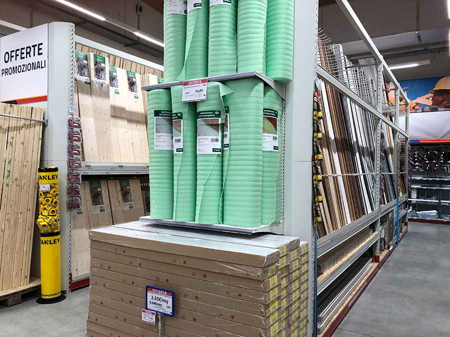 Ed è l’esposizione in altezza, una costante di tutto il negozio, che spicca in particolare in reparti come quello del bagno e idraulica dove, lo spazio spesso riservato allo stock qui viene dedicato all’esposizione del prodotto, creando le condizioni per amplificare ulteriormente la proposta del negozio.