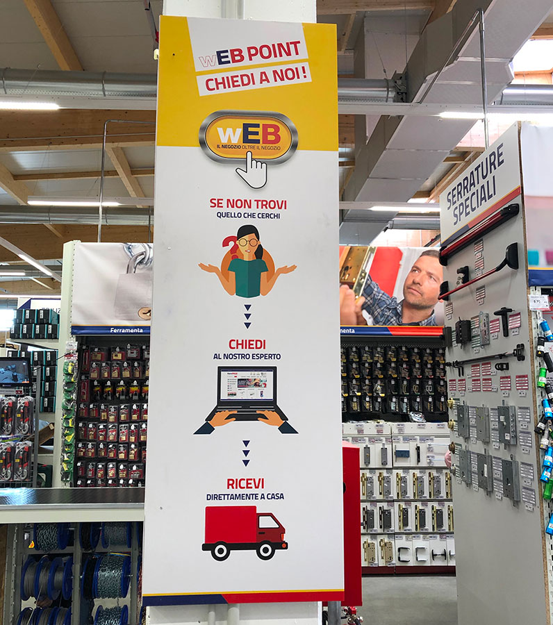 In tutto il negozio il richiamo al web è continuo e costante, esempio direi unico nelle insegne del bricolage. Con quali risultati?