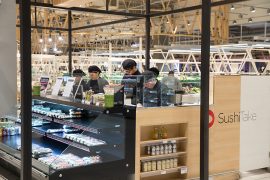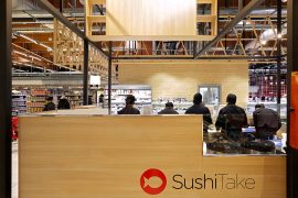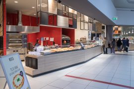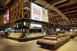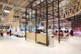 Entrando nel dettaglio del cuore food di Extracoop, soci e clienti vi ritrovano isole e banchi tradizionalmente presenti negli ipermercati, concepiti per il consumatore d’oggi, ma anche reparti nuovi. Nella piazza dell’ortofrutta, non poteva mancare un’ampia proposta di frutta e verdura pronta al consumo. Oltre alla cantina e ai classici banchi dei formaggi, della gastronomia, delle carni, della pescheria, del pane e pasticceria (con prodotti pronti preparati nei laboratori a vista, da portar via o da consumare nelle aree allestite con tavoli e sedie), ci sono reparti innovativi come il sushi take, un corner che propone piatti della cucina giapponese preparati a vista dai cuochi al momento e serviti in vaschetta. Sushi e sashimi possono essere portati a casa o gustati negli spazi a sedere a disposizione, insieme a una gamma di birre e condimenti dai sapori che ricordano terre lontane. O come il corner Territori.coop che mette in vendita oltre 400 eccellenze enogastronomiche dei territori in cui è presente Coop Alleanza 3.0, selezionate anche sulla base dell’esperienza sviluppata negli ultimi 2 anni grazie a Sapori, si parte!, l’iniziativa che ha portato in tutta la rete della cooperativa i migliori prodotti locali. Nuova è pure l’area showcooking, uno spazio dedicato al mondo e ai segreti della buona cucina, per conoscere le produzioni gastronomiche, ammirare chef in azione nel preparare piatti gustosi e assaggiare le pietanze preparate, scoprendo nuovi sapori, grazie al susseguirsi d’animazioni e d’eventi dal vivo.