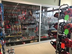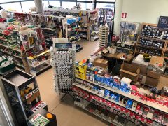Il punto vendita, si sviluppa su tre piani, dove al piano terreno (1.100 mq) l’esposizione a libero servizio è costruita intorno alla centralità del banco di vendita assistita. L’offerta è tecnica con un elevata specializzazione nella ferramenta e nell’utensileria. Un’offerta messa in mostra anche da un’ampia vetrata che occupa un intero lato del negozio e che offre un “colpo d’occhio” completo. Sempre al pian terreno è presente l’officina di manutenzione con ben 5 operatori dedicati.
