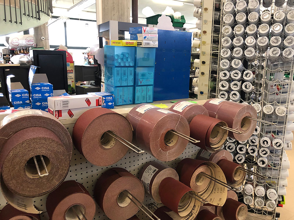 Il punto vendita, si sviluppa su tre piani, dove al piano terreno (1.100 mq) l’esposizione a libero servizio è costruita intorno alla centralità del banco di vendita assistita. L’offerta è tecnica con un elevata specializzazione nella ferramenta e nell’utensileria. Un’offerta messa in mostra anche da un’ampia vetrata che occupa un intero lato del negozio e che offre un “colpo d’occhio” completo. Sempre al pian terreno è presente l’officina di manutenzione con ben 5 operatori dedicati.