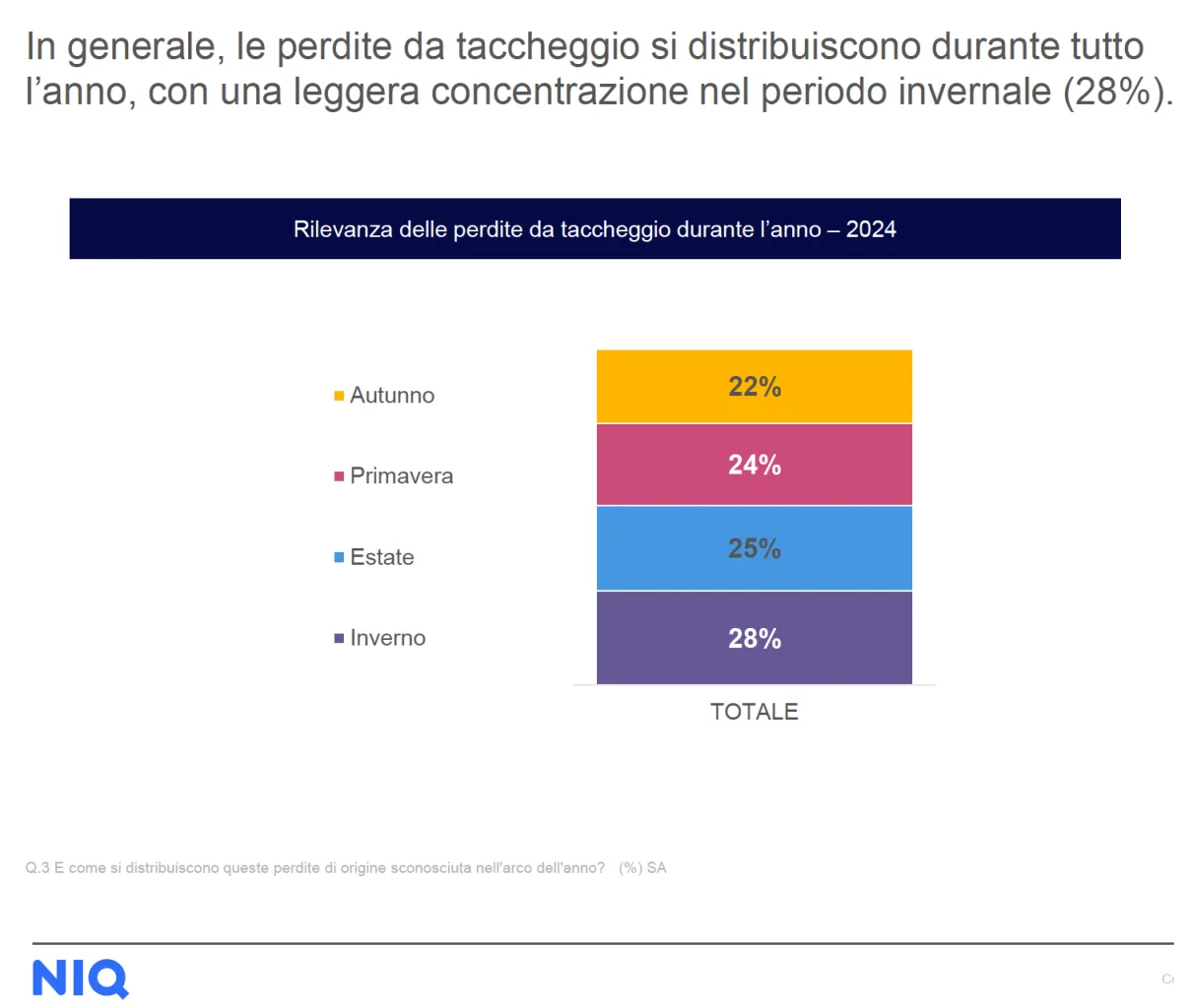 La stagionalità incide meno di quanto si pensi: il fenomeno è spalmato su tutto l’anno, con una lieve concentrazione in inverno (28%). L’area di vendita è il punto più critico per il 95% degli intervistati, seguita dalla zona casse; in altre parole, l’escalation non avviene in back-office ma a scaffale, in corsia e nel passaggio alla transazione.