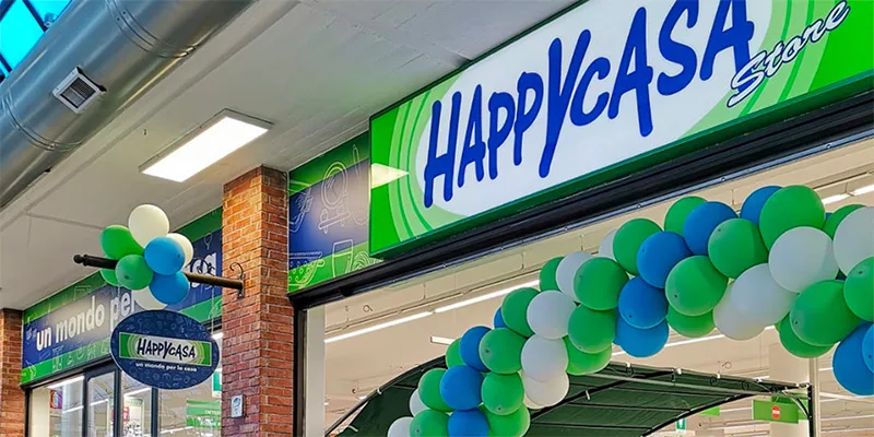 Nata a Martina Franca (TA) nel 2008, Happy Casa, specializzata in casalinghi, piccoli elettrodomestici, articoli da regalo, giocattoli, accessori auto/moto, garden e bricolage, conta un fatturato 2023 che supera i 330 milioni di euro con la previsione di un fatturato 2025 per oltre 500 milioni di euro, 160 punti di vendita in 17 regioni per un totale di oltre 200.000 mq di superficie di vendita e più di 1.600 dipendenti.
