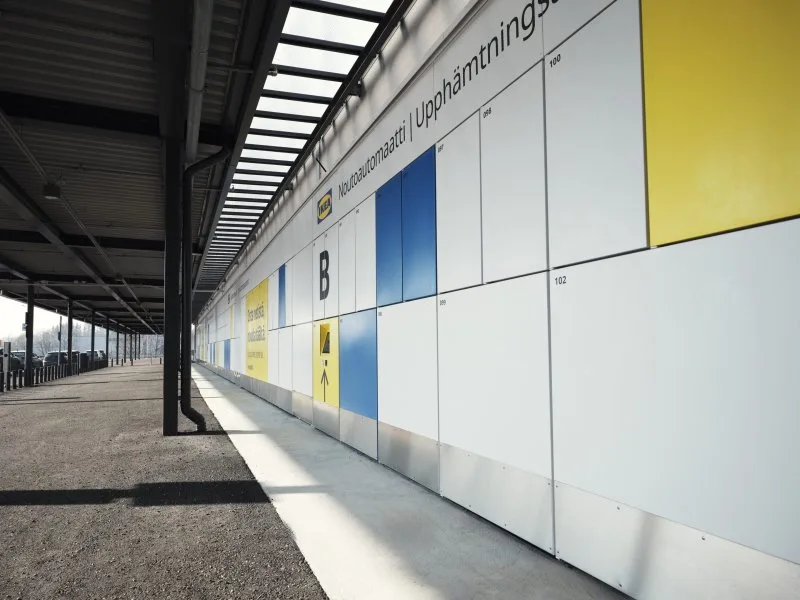 La struttura ospita anche il maggior numero di armadietti per il ritiro della merce in Finlandia, consentendo ai clienti di recuperare qualsiasi cosa, da piccoli accessori per la casa a intere cucine, quando lo desiderano, di giorno o di notte.