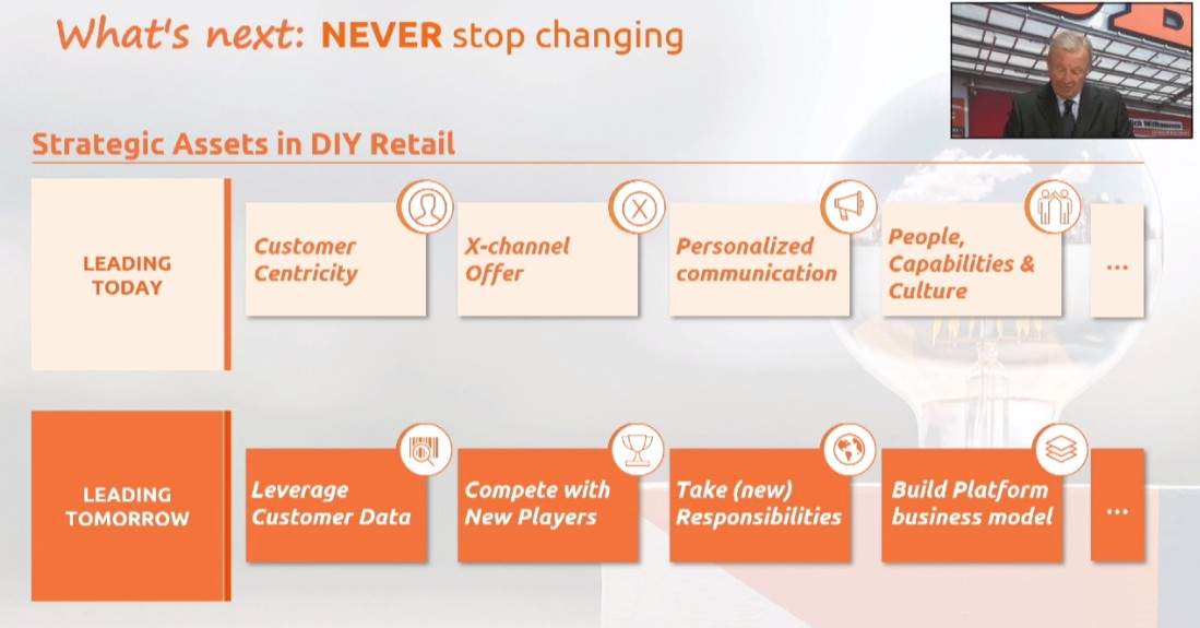 La relazione con il cliente oramai è permanente. Dobbiamo quindi essere in grado di sviluppare sempre più punti di contatto con il consumatore offrendo servizi sempre diversi (pianificazione, sviluppo di capacità personali, etc). “A esempio in Obi abbiamo sviluppato l’app HeyObi che permette al cliente di essere sempre in contatto con noi durante l’anno. Tanta innovazione e tante risorse per avere una relazione costante con il cliente finale”. (slide Su cosa concentrarsi)