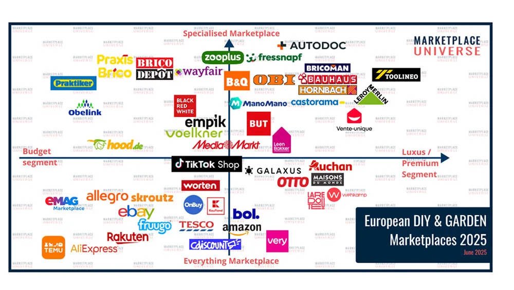 Accanto a questi, si fanno spazio i retailer specializzati che stanno convertendo le proprie piattaforme in veri marketplace: è il caso di B&Q/Kingfisher (UK), Leroy Merlin, Bricoman/Tecnomat/Obramat (Gruppo Adeo), Praxis e Brico (Gruppo Maxeda), Hornbach e OBI in Germania. Bauhaus, dopo alcune difficoltà tecniche, sta ripartendo con un nuovo software, mentre in Francia crescono Castorama e BUT(arredamento).