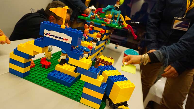 Le sessioni avranno per protagonisti i mattoncini da costruzione, attraverso i quali i formatori coinvolgeranno i partecipanti, assumendo il gioco come strumento di facilitazione dell’interazione tra singoli, ed utilizzandolo per creare metafore della propria identità organizzativa e del lavoro in azienda. Analisi dei punti deboli e dei punti di forza, suggerimenti, proposte, saranno il contenuto dei singoli mattoni sui quali costruire un modello di Mercatone Uno del futuro.