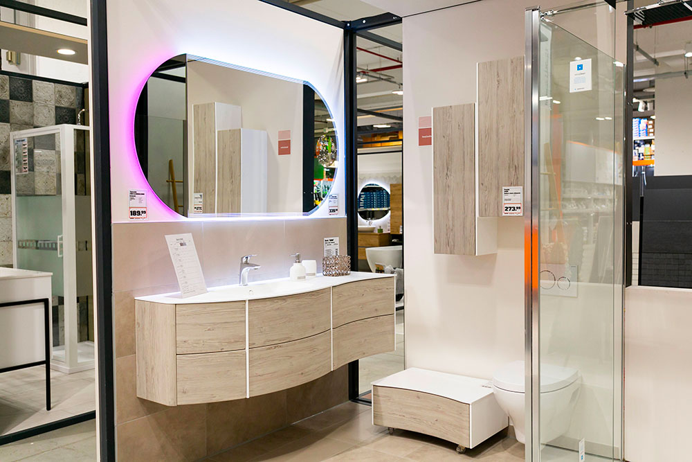 Il reparto Bagno si presenta al visitatore con ambientazioni cui ispirarsi grazie alle numerose soluzioni d’arredo che mescolano il meglio di materiali, rivestimenti, texture a calibrati tocchi di colore. In questo momento sono quattro le diverse ambientazioni bagno realizzabili e abbinabili a prodotti e accessori presenti nel punto vendita (stile Bon Ton, il New Vintage, l’EcoChic e l’Easy Comfort).