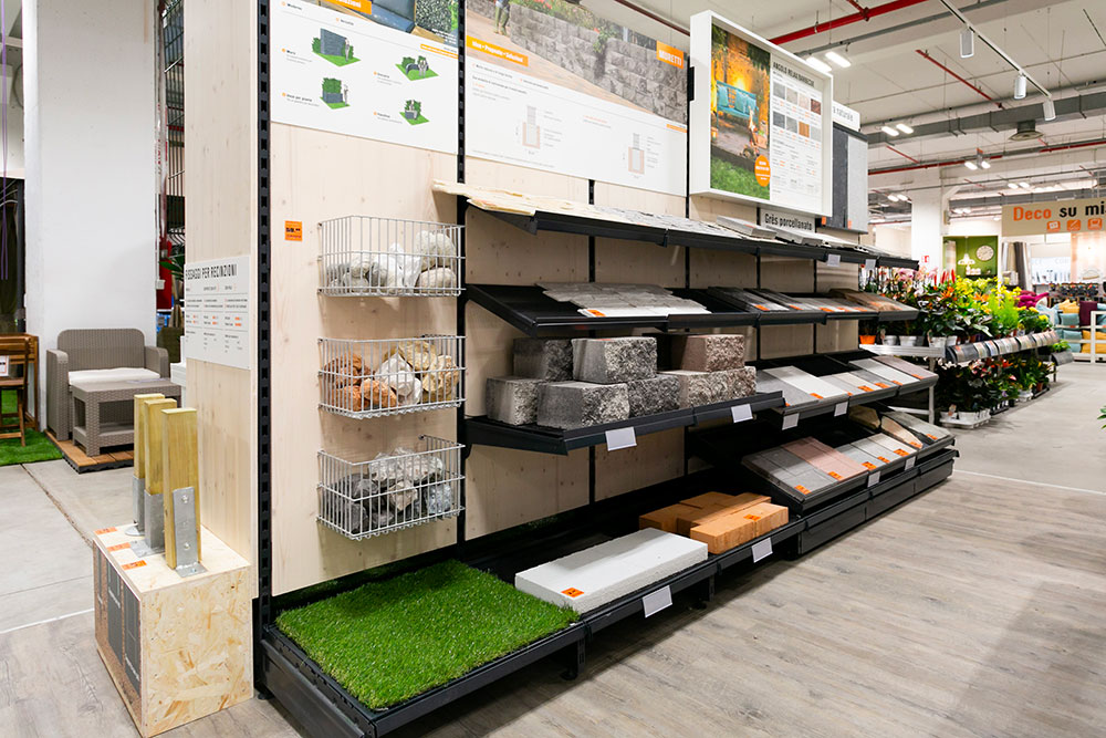 Proseguendo la visita al negozio si giunge al reparto Garden, uno dei fiori all’occhiello di OBI, arricchito ora con un maggiore assortimento di piante da interno, da esterno e numerose soluzioni per allestire al meglio il proprio spazio verde. Nel cuore del Garden, è nato il nuovo Spazio Giardino: un’area dove il cliente può rivolgersi a specialisti dedicati per avere consigli, suggerimenti e idee, dalle piastrelle da esterno ai rivestimenti nei diversi materiali e tonalità di colore.