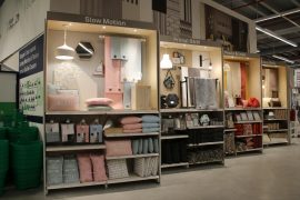 Le “portate” del negozio, ovvero la distanza tra il corridoio centrale e il fondo del punto vendita, in questo caso sono state accorciate “in modo che il cliente non si perda nessuna famiglia prodotto” ha spiegato Vito Casciaro. Inoltre, oltre all’aumentata presenza di show room, sono state create nicchie ad U per mostrare l’ampiezza delle gamme, anche estendo – talvolta – anche all’intero reparto, come nel caso dell’illuminazione, domotica, nel trattamento dell’acqua e dell’aria.