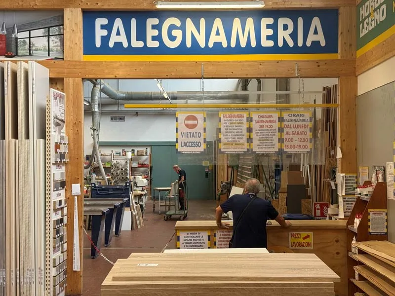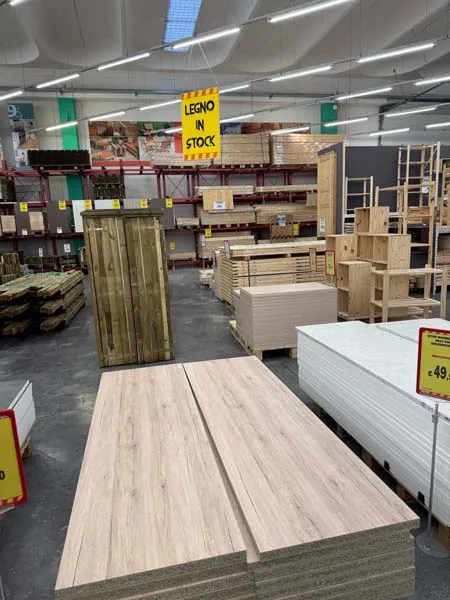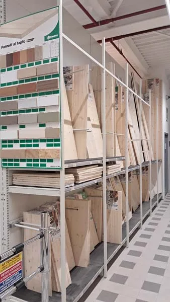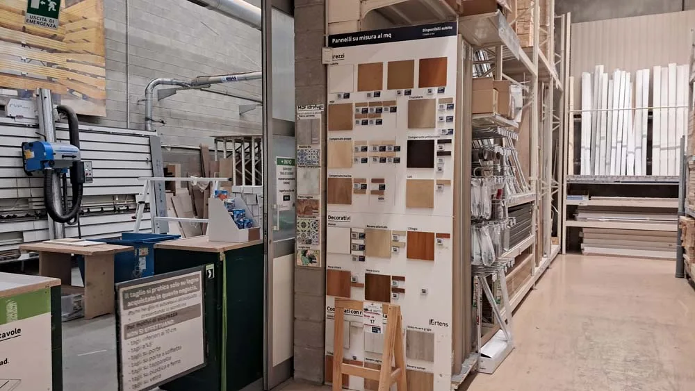 Il Reparto Legno, con l’immancabile area per il taglio legno è naturalmente posto sul fondo del punto vendita, in una zona (spesso) angolata, dove il rumore delle macchine per il taglio non disturba i consumatori.