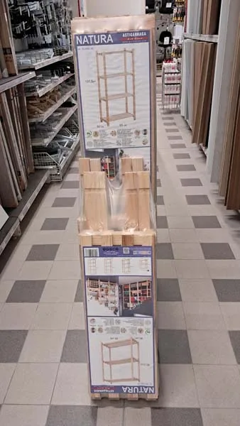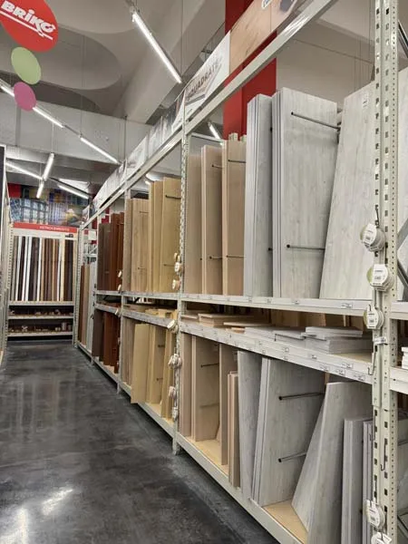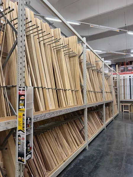 Brico io ha 2 corsie: una con listelli ed una con mensole, profili e battiscopa.