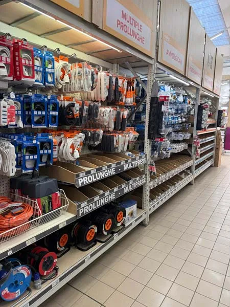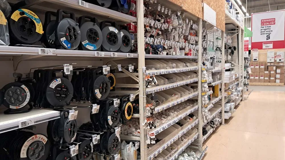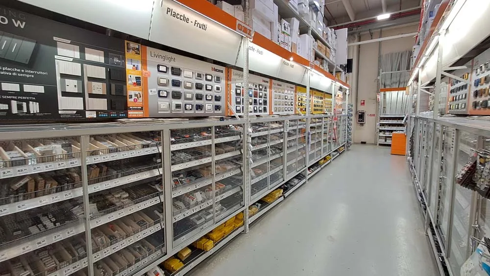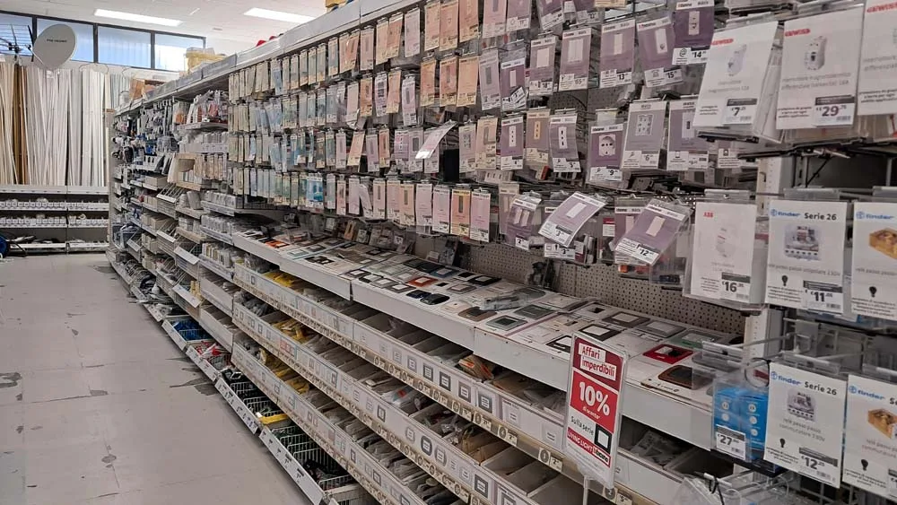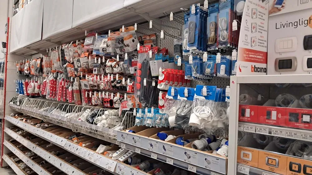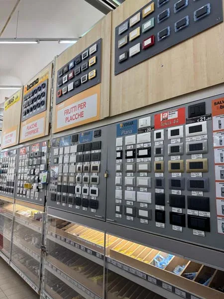 Bricocenter ha una corsia con accessori Electraline, Lexman, Gewiss, Vimar, B Ticino, Rosi e Fanton.