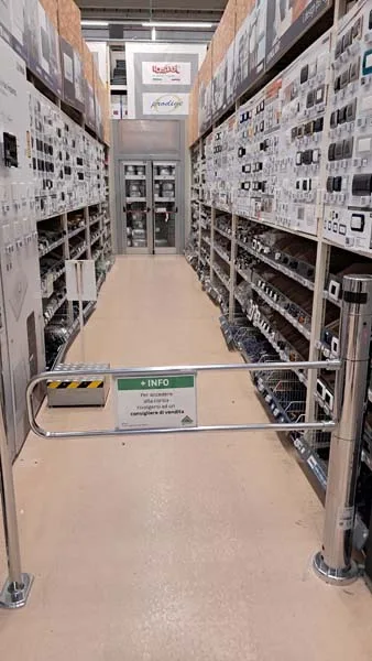 Una corsia è dedicata a placche e frutti, con accesso “chiuso” che viene aperto solo in presenza di un consigliere di vendita.