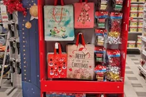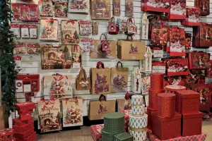 L’offerta comprende nastri e carte per pacchi regalo, decorazioni, candele, cappelli ed altri piccoli gadget.