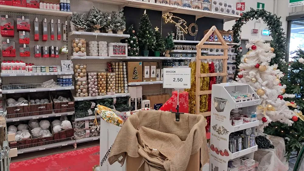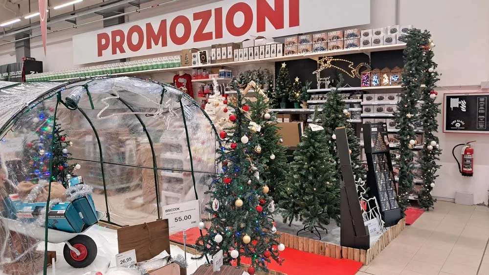Eurobrico (Consorzio Bricolife) ha una grande esposizione sia a parete che con isole, con alberi e tante decorazioni relative, luci e illuminazioni anche da esterno, e tantissimi pupazzi e peluche.