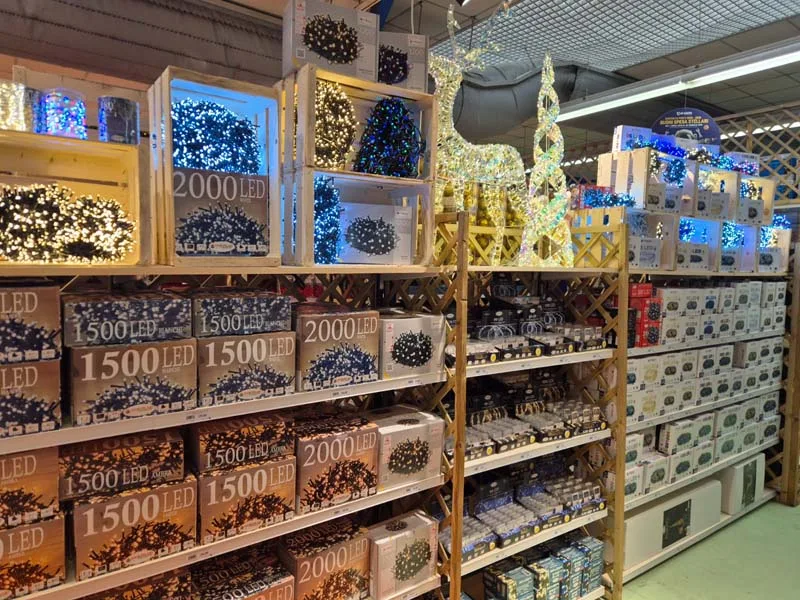 Diversi alberi con addobbi in vari colori, pupazzi e luminarie da interno ed esterno completano l’offerta.