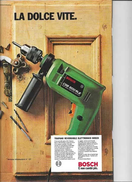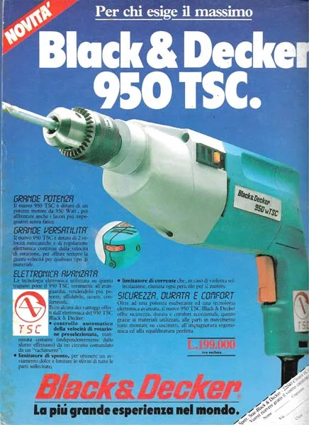 L’utensile elettrico e in particolare il trapano era l’emblema, il prodotto leader, il più pubblicizzato, perché il più semplice da usare, per un pubblico che si avvicinava a quei lavori che erano sempre stati appannaggio degli artigiani.