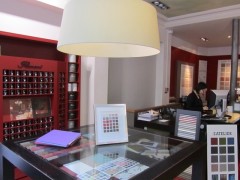 Lo spirito di questo nuovo concetto di negozio – ha dichiarato Lucien Tourtoulouè di fornire un percorso per rinnovare costantemente il colore e i materiali delle collezioni firmate da stilisti generatori di tendenze”. E lo spazio, va detto, è talmente accattivante che si vorrebbero scegliere tutte le tinte presentate, grazie ad un impianto d’illuminazione che mescola la presenza di un tono molto naturale, molto simile alla luce del giorno, a punti luce decisamente artificiali, in modo da poter verificare la resa del coloro in entrambe le circostante.