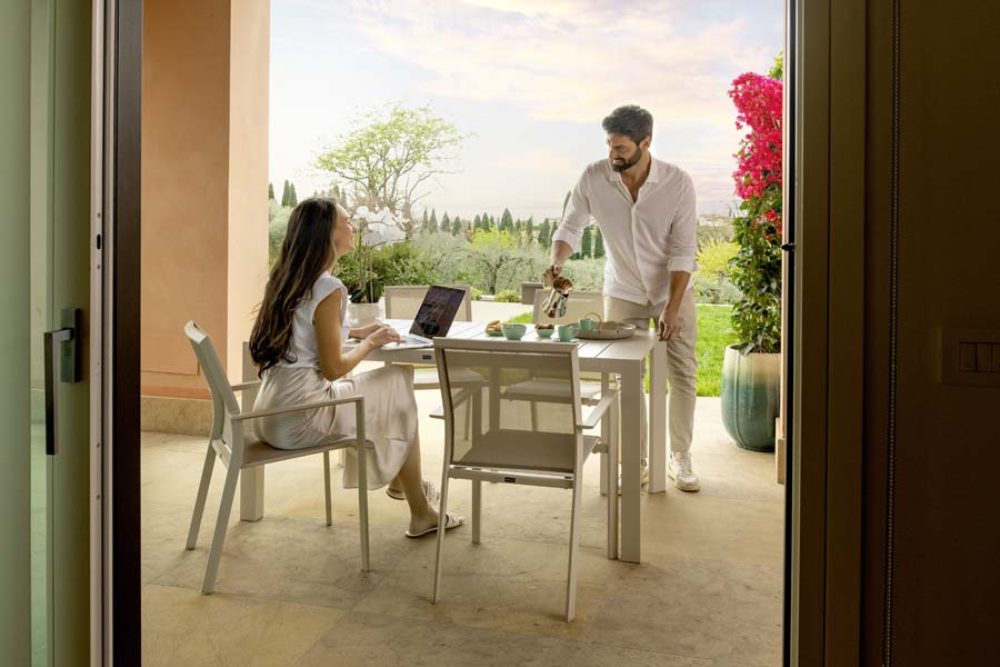 La filosofia di Outside Home® nasce dalla volontà di eliminare le barriere tra ambienti interni ed esterni. Grazie all’impiego di materiali innovativi e resistenti agli agenti atmosferici, il design contemporaneo entra in giardini e verande con la stessa cura riservata agli interni. L’obiettivo è trasformare ogni spazio esterno — dal dehors al terrazzo — in un ambiente da vivere tutto l’anno, percepito come una stanza aggiuntiva della casa, capace di valorizzare l’immobile nel suo complesso.