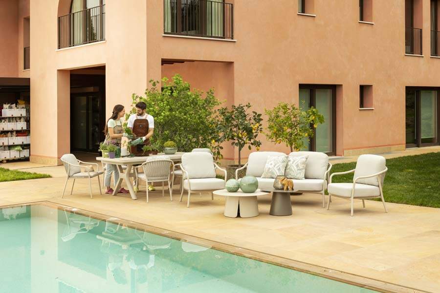 E, ancora: “Per la nostra collezione abbiamo scelto materiali e palette cromatiche che si avvicinano al mondo dell’interior design. L’arredo giardino è sempre più vissuto come un’estensione naturale della casa, e noi vogliamo che il cliente percepisca la stessa qualità e lo stesso comfort che trova nel proprio soggiorno, con la resistenza tecnica necessaria per l’esterno.”
