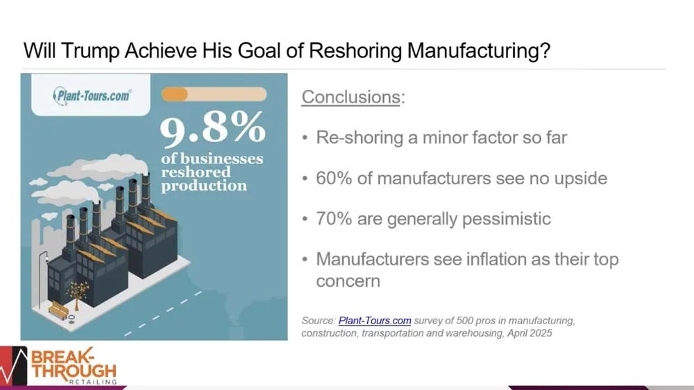 Le promesse di rilancio produttivo negli Stati Uniti non si sono finora concretizzate. Molti produttori giudicano negativamente i dazi, ritenendoli più dannosi che utili, soprattutto per l’effetto inflattivo che si sta diffondendo nell’economia.