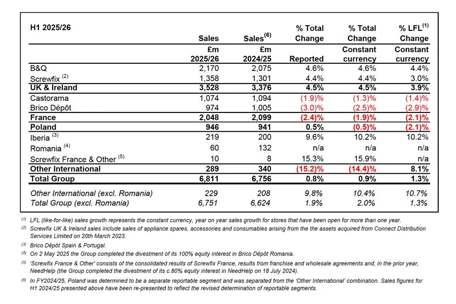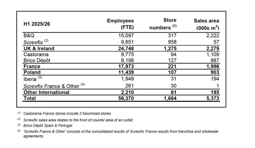 Il Regno Unito si è confermato il motore principale della crescita, con B&Q e Screwfix in progresso rispettivamente del 4,4% e del 3% nelle vendite comparabili. In Francia e Polonia il contesto resta debole, ma con segnali di miglioramento nel secondo trimestre. La Spagna ha mostrato una dinamica positiva con incrementi a doppia cifra, mentre la posizione in Polonia rimane sostanzialmente in linea con l’andamento del mercato.